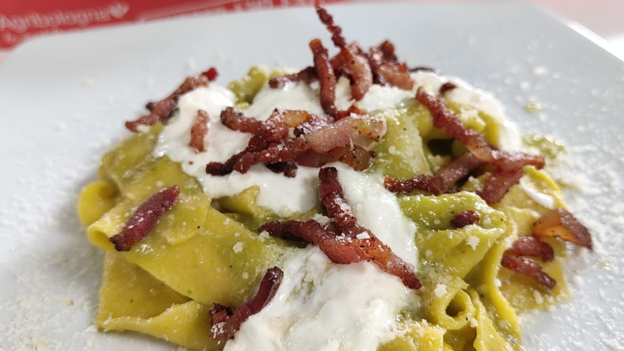 Crema di friggitelli, porro, guanciale croccante e stracciatella fresca: il re della sfoglia Beniamino Baleotti è già con le mani in pasta nella cucina di Questo l’ho fatto Io per presentare un nuovo godurioso primo piatto.