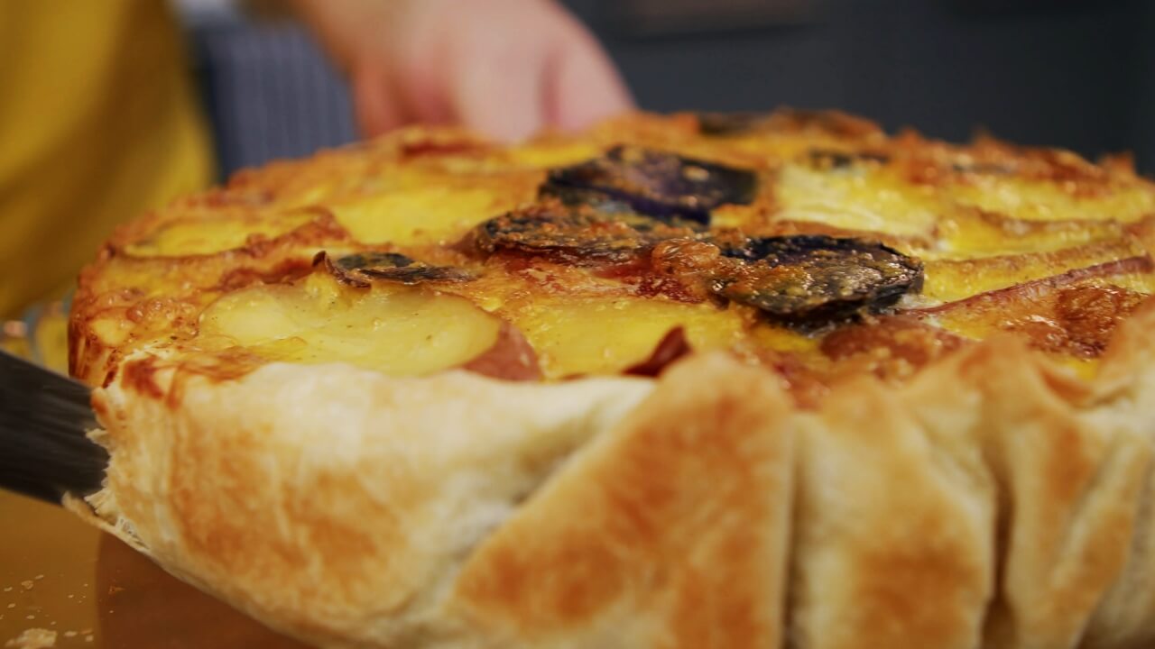 La primavera non è così lontana nella cucina di Questo l’ho fatto io. Con Beniamino Baleotti oggi si prepara un piatto veloce e colorato: la torta salata con patate e mortadella, un tocco di provola e altri formaggi.