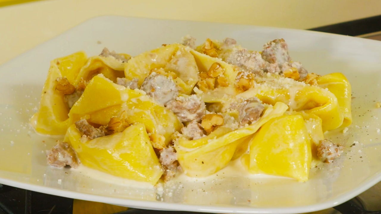 In cucina con creatività: con Beniamino Baleotti vedremo un modo alternativo per condire i tortellacci – ma anche i tortelloni – con zucca precotta, noci, parmigiano e salsiccia.